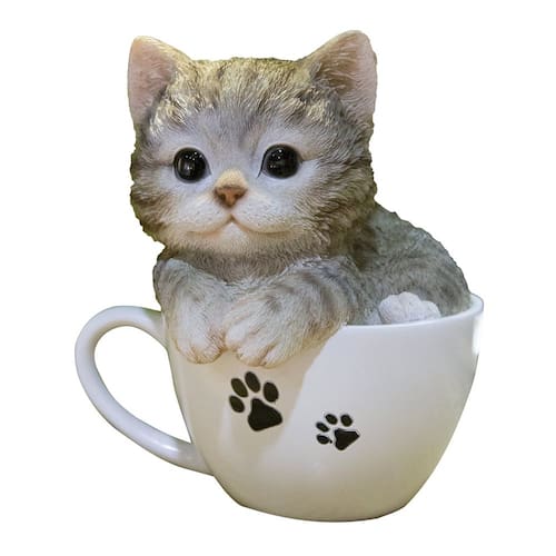 minúsculas cinza gatinho que você irá instantaneamente no amor com este gatinho irritável adorável cinza em uma Copa o branco é adornado com patas preto realista um presente criativo para a família ou amigos ou presenteie-se com este lindo acessório de composição do item: poliresina cor: branco/cinza gatinho copo altura: 12 "