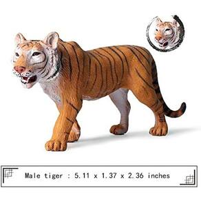Feito de plástico de alta qualidade, durável e resistenteTamanho (C x L x A), Tigre macho: 5,11 x 1,37 x 2,36 polegadas, tigre feminino 4,52 x 0,98 x 2,36 polegadas, tigre pequeno: 2,75 x 0,98 x 1,57 polegadas, tigre pequeno: 2,55 x 1,18 x 1,77 polegadasOs conjuntos de modelos Tiger são de alta qualidade, cada figura é finamente pintada à mão e esculpida por especialistas que garantem autenticidadeÓtimo para adereços educacionais, decoração de mesa, cenas de paisagem, topo de bolo. Esta estatueta de simulação de animal selvagem com forma realista, aparência e cor is, excelentes detalhes e artesanato, esses modelos são projetados para colecionadores e amantes de animais em todos os lugares