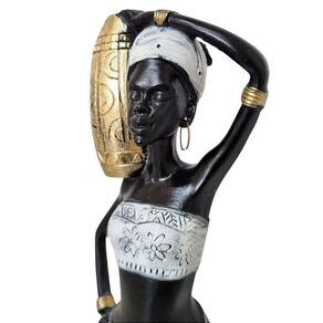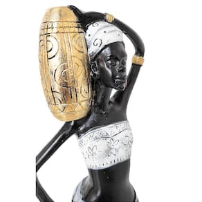 Conteúdo da embalagem: -01 Unidade Estatueta Decorativa Africana Com Vaso no ombro Resina Preto, Dourado e Branco 38cm Dimensões: 38cm x 9cm Material: Resina
