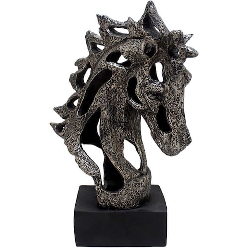 1 Estatueta Decorativa Cabeça De Cavalo Em Resina De 30cm;