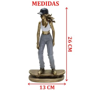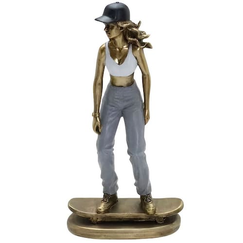 1 Estatueta Decorativa De Skatista Mulher Em Resina De 26cm;