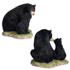 Estatueta Decorativa Urso Negro com Filhote 15cm Altura