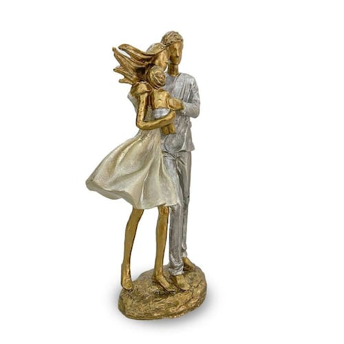 Descrição do produto: uma peça encantadora que simboliza o amor, a união e a alegria da família Com delicadeza e riqueza de detalhes, a escultura retrata um casal em um momento de ternura e proteção, segurando seu bebê com carinho e cuidado. A suavidade das formas e a expressão serena dos personagens transmitem uma sensação de aconchego, segurança e afeto. feita em resina de alta qualidade, a peça é resistente e apresenta um acabamento sofisticado, tornando-a uma lembrança eterna dos momentos mais preciosos da vida.