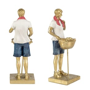 Estatueta Homem Gourmet De Resina Dourada Decoração 25x8,5cm