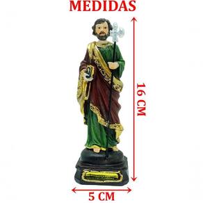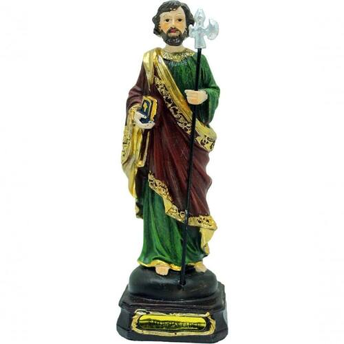 Características Gerais do Produto: - Material: Resina - Modelo: Imagem De São Judas Tadeu - Cor: Marrom; Verde; Vermelho - Dimensões aproximadas: Altura 16cm X Largura 5cm X Comprimento 5cm; Garantia: - Garantia de fábrica - 1 Mês