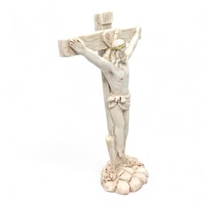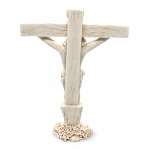 Estatueta de Resina Branca – Jesus na Cruz 15 cm Símbolo de fé, proteção e espiritualidade no seu lar.