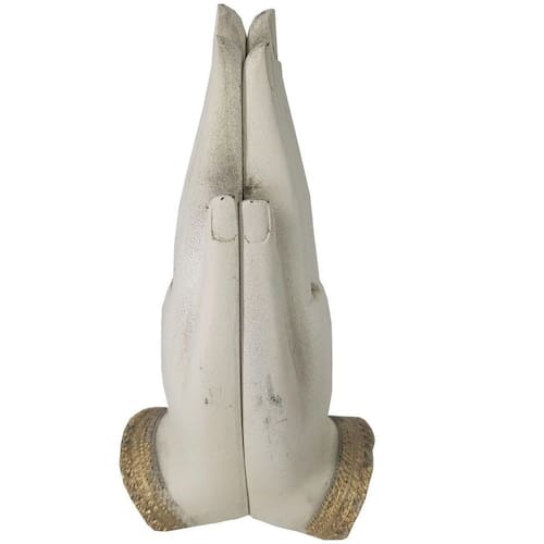 Estatueta namastê com buda 05536 a estatueta da mão de buda é uma representação simbólica da mão do buda siddhartha gautama, o fundador do budismo. Esta mão é frequentemente retratada em várias posições, cada uma com seu significado específico. A posição da mão é conhecida como mudra e é uma parte importante da iconografia budista. Esta estatueta da mão no gesto namaste é uma representação do gesto de saudação tradicionalmente utilizado em muitas culturas da índia e do nepal. Namaste é uma saudação respeitosa que significa eu saúdo você ou a divindade dentro de mim saúda a divindade dentro de você. É um gesto comum em muitas tradições espirituais e religiosas, incluindo o hinduísmo e o budismo. Esta estatueta da mão no gesto namaste representa duas mãos unidas com as palmas pressionadas uma contra a outra e os dedos apontando para cima. O polegar é colocado perto do peito, na altura do coração, enquanto os outros dedos estendem-se para cima em direção ao céu. Esse gesto é realizado com as mãos próximas ao peito e os olhos fechados em um sinal de respeito e reverência. Esta estatueta da mão namaste é frequentemente utilizado como objeto de decoração e de espiritualidade em casas, estúdios de yoga, centros de meditação e outros lugares onde a paz e o respeito espiritual são valorizados. Esta é feita em resina ecológica e tem 21cm, sendo uma ótima peça de decoração. Esta estatueta é apreciada por sua simplicidade e pela mensagem de respeito e unidade que transmite. O gesto namaste é uma expressão de conexão espiritual e é frequentemente utilizado como uma forma de cumprimento respeitoso e pacífico. Esta estatueta mão namastê é valorizada por sua beleza artística e pelo significado espiritual que representa no budismo, lembrando aos praticantes dos ensinamentos do buda e dos ideais de compaixão, sabedoria e iluminação. Na mana om o que importa é o significado que esta peça representa pra você. Gratidão, namastê e tudo de ohm Marca: Mana Om