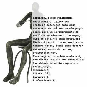 Com dimensões de 20cm de altura, 14cm de largura e 12cm de profundidade, essa estatueta de músico é ideal para decorar estantes, mesas de centro, prateleiras e qualquer outro lugar que você desejar. Seu design elegante e moderno adiciona um toque de sofisticação a qualquer ambiente.