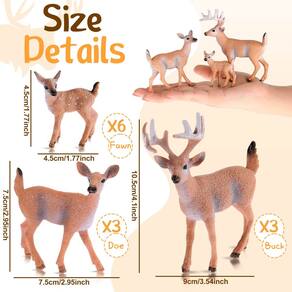 Características: Presente atencioso para enviar: Você pode enviar essas decorações de veado para casa para amigos e familiares no Dia de Ação de Graças, Natal, aniversário e outras ocasiões para mostrar seu amor e carinho. Use sua imaginação: O topo de bolo de veado é ideal para treinar suas habilidades e imaginação, você pode usá-lo para criar várias cenas de história, também pode combinar com outras decorações. Especificações: Material: plástico PVC Cor: principalmente marrom e branco Tamanho: aprox. 10 cm de altura, 7,6 cm de altura, 1,8 polegadas/4,6 cm de altura. A embalagem inclui: 12 miniaturas de rena. Observações: Medição manual, considere pequenos erros no tamanho. A cor pode existir uma pequena diferença devido a diferentes exibições de tela. Adequado para pessoas com mais de 14 anos de idade. Itens pequenos e não comestíveis, evite engolir ou asfixiar. - Veado realista: o mini veado é projetado principalmente nas cores marrom e branco, e alguns têm padrões manchados em seus corpos, cauda, chifres e pernas têm linhas suaves, mais vívidas como pequenas decorações - Conjunto de veado realista: as estatuetas de veado têm cerca de 10 cm de altura, 7,6 cm de altura, 1,8 polegadas/4,6 cm de altura, 3 tamanhos diferentes estão disponíveis, proporcionando efeitos mais realistas, requintados e adequados para serem colocados na maioria das superfícies - Adequado para a maioria: nosso boneco de veado é apropriado para ser colecionado por amantes de animais, observadores e outros, você pode colocá-lo em bolos e cupcakes em casamentos, aniversários, festas, chás de panela e muito mais como topos de bolo - Confiável e resistente: estes pequenos brinquedos de veado são feitos de plástico PVC, inodoros e resistentes, não desbotam facilmente em cores ou deformam, podem mostrar uma aparência agradável por um tempo relativamente longo, você pode usar com confiança - Coberturas de veado ideais para bolo: você receberá um pacote que inclui 12 peças de estatuetas de veado no total, 3 peças de cervo macho, 3 peças de veado fêmea, 6 peças de cervo pequeno, suficiente em quantidades e estilos para você escolher