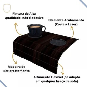 Esteira bandeja sofá porta copo + esteira controle + bolacha