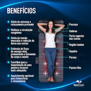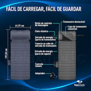 Com 5 modos de massagem e 3 níveis de intensidade ajustáveis, a Pillow Top oferece controle total sobre a massagem. O controle remoto integrado facilita a personalização de cada sessão, conforme sua preferência.