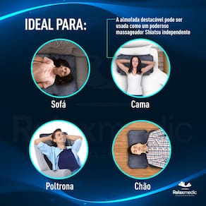 A Pillow Top possui 14 pontos de massagem, incluindo 10 pontos vibratórios e 4 pontos de Shiatsu, trabalhando juntos para proporcionar uma massagem completa. A almofada Shiatsu removível permite direcionar a massagem para áreas específicas do corpo, ajustando a experiência conforme sua preferência.