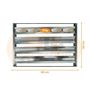 - Material: Tiras Alumínio e o quadro é em flandres com reforço em arame; - Tipo: 5 Talas/Tiras - Tamanho tala/tira: 7cm - Tipo de produção: pão francês 50g - Marca: Imeca