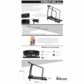 A caminhada é uma ótima alternativa para seu desempenho na prática esportiva. E pensando nisso a Polimet desenvolveu a Esteira EP-1600 Sênior, possui barra de apoio para maior segurança, além de ajudar na coordenação motora. Proporcionando mais saúde para terceira idade.