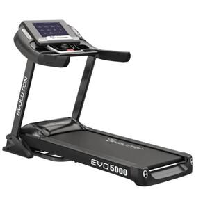 A EVO 5000 vem com um painel de 15,6" Touch Screen com sistema Bluetooth e autofalantes, e 12 programas de treino pré-setados. A aferição dos batimentos cardíacos é feita via hand pulse e o equipamento possui 3 porta-objetos para sua conveniência.