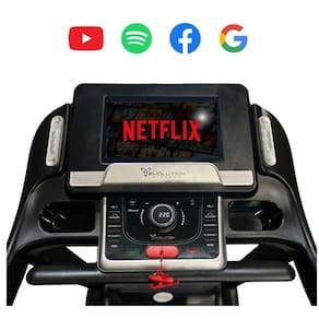 A EVO 5000 vem com um painel de 15,6 Touch Screen com sistema Bluetooth e autofalantes, e 12 programas de treino pré-setados. A aferição dos batimentos cardíacos é feita via hand pulse e o equipamento possui 3 porta-objetos para sua conveniência.