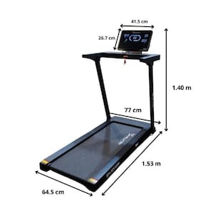 Possui uma superfície de caminhada de 48 cm x 130 cm para conforto e segurança. O painel em full black com iluminação branca e display intuitivo inclui 15 níveis de inclinação eletrônica, monitora velocidade, calorias, distância, e tempo, e conta com 15 programas de treino pré-definidos e conectividade Bluetooth. Aferição dos batimentos cardíacos e 2 porta-objetos adicionam praticidade ao treino.