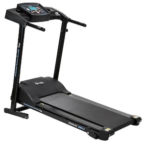 - Possui monitor em LED com 5 janelas e funções, sendo elas: tempo, velocidade, distância, calorias e batimentos cardíacos. Tem 3 níveis de inclinação, 4 programas pré-definidos de velocidade. É dobrável e possui rodinhas para transporte.