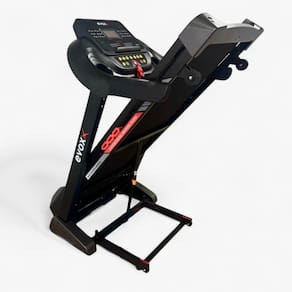 Estrutura dobrável, ocupando cerca da metade do comprimento da esteira, com pistão hidráulico (desdobramento suave sem precisar segurar o equipamento com as mãos, além de ao erguer a esteira travar com facilidade, menor peso e maior segurança)