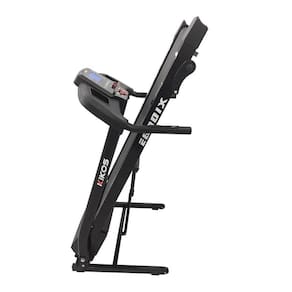 Display em LED (velocidade, distância, cronômetro, monitoramento cardíaco e calorias), possui velocidade 01-12 km/h, motor 2.3 HP DC (Peak Power), 3 programas predefinidos de treinamento, 3 de nível de inclinação manual, 2 porta objetos. Na cor preta, projetada para usuários com até 100 kg e altura máxima 1,80 m.