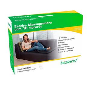 Conteúdo da embalagem: - 01 Esteira massageadora com 10 motores - 01 Controle remoto - 01 Adaptador de tomada bivolt automático - 01 Manual de instruções