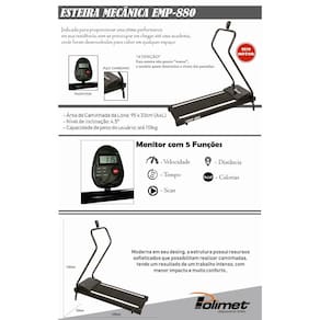 - Monitor com 5 funções (velocidade, distância, tempo, caloria, scan)