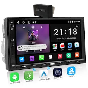 Estéreo automotivo A5L Android Double DIN com OBD II, ATOTOEXCEL 17.8 cm 1280 x 720 IPS tela sensível ao toque rádio DIN duplo, 2G + 32G, Carplay sem fio, Android Auto, 24-B EQ DSP, WiFi/BT/USB, rastreador GPS
