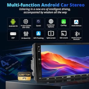 - [CarPlay sem fio e Android Auto] A unidade de cabeça automática Android DIN dupla suporta CarPlay sem fio e Android Auto. Você pode acessar a música, mapas de navegação, mensagens e chamadas telefônicas do seu telefone quando conectado via Bluetooth e Wi-Fi ou USB. Suporta voz c0ntr0l através de S-ir-i ou GGLE Assistant. Tela IPS de 7 polegadas 1280 x 720 com um ângulo de visualização amplo de 178°, tornando uma visualização clara mesmo em plena luz do dia.