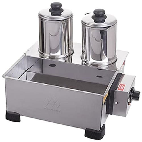 Os esterilizadores foram desenvolvidos para agilizar o atendimento no balcão dos bares, padarias, restaurantes, lanchonetes e serviços de alimentação em geral. São ideais para servir com comodidade bebidas quentes como café, leite, achocolatados e chás. Corpo em aço inoxidável 430 reforçado; Bule Tradicional estampado em aço 304. material indicado para o contato com alimentos e bebidas ; Resistência tubular em inox blindada; Pés de borracha antiderrapante; Termostato regulável de 20ºC a 120ºC; Ideal para servir e manter quente café, leite, chás e achocolatado; Indicados para bares, padarias, restaurantes, cafeterias, lanchonetes e serviços de alimentação em geral. Modelo: ES.1.291/292 Capacidade: 2 Bules 1,8 litros cada; Consumo: 750w / 0,75 kw/h; Alimentação: 127v ou 220v; Medidas do Produto CxAxL : 38 x 30 x 31 cm; Medidas da Embalagem CxAxL : 42 x 33 x 42 cm; Peso Líquido: 2,6 kg; Peso Bruto: 3,2 kg. Ean: 7898131062119