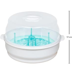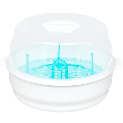 O esterilizador de micro-ondas da Buba oferece praticidade e segurança na higienização dos acessórios do bebê. Esteriliza em poucos minutos, no micro-ondas, por meio do vapor. É ideal para mamadeiras,bicos,chupetas etc.. Possui bandeja,com alça centra,para sua fácil remoção. Acompanha pinça para retirada dos objetos, evitando o contato da mão com a água quente. Supercompacto,prático e ideal para viagens.