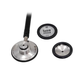 Estetoscópio spirit - md iii pro adulto azul perolizado Estetoscópio spirit - md iii pro adulto Cor: azul perolizado Com o spirit iii pro a ausculta ficou ainda mais completa - o spirit iii pro possibilita auscultar pacientes de qualquer idade, tamanho e ainda examinar pequenas partes do corpo, como as artérias carótidas; - membranas sintonizáveis nos 2 lados e com apenas uma leve pressão sobre a área a ser auscultada, cada diafragma alterna entre sons de altas e baixas frequências; - sobressalente acompanha um terceiro lado, o modo sino, uma peça em aço inox intercambiável, fácil e rápida de conectar, para ampliar ainda mais possibilidades de auscultação. - molas internas reforçadas com camada dupla de metal, para maior resistência e melhor ajuste da tensão; - as hastes binaurais são leves, mais resistentes e ajustadas a um ângulo de 15, o que proporciona melhor ergonomia e conforto; - auscultador fabricado em aço inox, melhor resposta das frequências, com graves e agudos bem definidos; - não contém látex. Kit sobressalente que acompanha o produto: - 01 sino em aço inox. - 02 pares de olivas em silicone. - 01 identificador de propriedade. Benefícios: - as olivas macias de silicone ajustam-se anatomicamente ao canal auditivo, permitindo maior conforto e seu encaixe sem rosca cria uma excelente vedação acústica; - olivas com tecnologia de nano silicone, não absorvem sujeiras e são de fácil limpeza; - utiliza sistema de anel não frio para maior conforto térmico do paciente; - tubo pvc com diversas opções de cores, incluindo tons perolizados; - versão black edition, com acabamento das partes em metal na cor preta. - de 5 anos contra defeitos de fabricação. Certificações: - anvisa: 80070210076. - gmp - good manufacturing practice boas práticas de fabricação . - fda u.S. - food and drug administration. - ce 0434. - iso 13485. A enfoque medical é distribuidora autorizada md - spirit Ean: 7899636116826