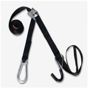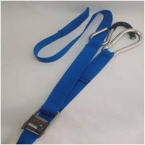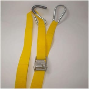 Cinta Cross com presilha de 25mm de largura e com 2,30 metros de comprimento e gancho tipo S nas extremidades para amarração de cargas em geral.