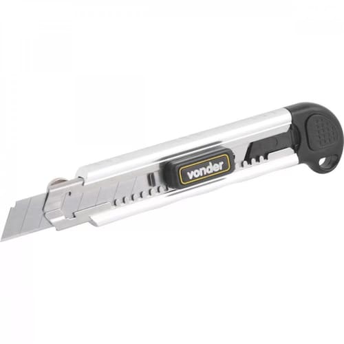 Conteúdo da Embalagem: 1 Estilete, acompanha: 5 lâminas Indicado para fazer cortes em geral Possui sistema de reposição automática das lâminas para maior comodidade. Conta ainda com dispositivo para travar a lâmina facilitando o manuseio e compartimento para 5 lâminas. DETALHES TÉCNICOS Material do corpo do estilete: Alumínio Tipo da lâmina: Reta segmentada Comprimento total do estilete: 7 - 177 mm Largura da lâmina mm : 18,0 CDC : legal: 90 dias Marca: Não Informado