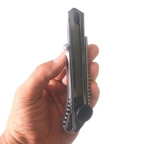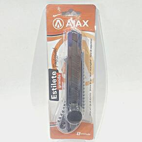 Estilete de aluminio ajax profissional com 1 lamina de 18mm Estilete de aluminio ajax profissional com 1 lamina de 18mm Indicado para realizar cortes em geral, o estilete de alumínio ajax conta ainda com guia metálica, botão parafuso giratório que permite travar a lâmina facilitando seu manuseio. Por seu corpo ser todo em liga de alumínio, ele, além de bonito, fica ainda mais resistente para uso casual ou profissional. Sku: a06021 Acompanha: 1 lâmina Tamanho da lâmina: 18 mm Dimensões do produto sem embalagem: cxlxa cm 4,2x2,3x15,5 cm Peso unitário: 0,085 kg