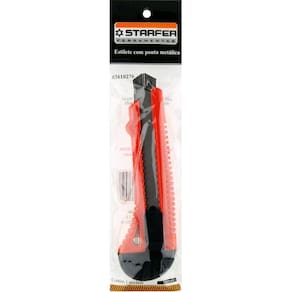 Estilete 18mm STARFER ponta metálica possui corpo injetado e estrutura interna de metal e dispositivo para travar a lâmina.Lâminas de largura 18mmCorpo em plástico ABSEstilete com ponta metalicaIndicado para fazer cortes em geralRef.: 03610276Marca: Starfer