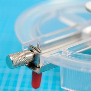 Este cortador circular desenvolvido para trabalhos leve se cortes circulares de 1,8 a 17 cm de diâmetro. O NT Cutter iC-1500P é diferenciado por não ter um pino central, que normalmente acaba furando ou deixando marcas no material no qual se esta trabalhando. Por não ter um pino, ele é equipado com uma guia/ indicador central que auxiliar a encontrar o ponto central e mantê-lo com grande facilidade. Estes detalhes fazem deste modelo perfeito para artesanato e trabalhos mais leves. Especificações técnicas:Modelo: iC-1500PCor: TransparenteLaminas de Substituição: BDA-200P, BSB-03PLaminas inclusas: 6 laminas de 45 1 montada + 5 reposição Acessórios: Tampa protetora da lamina, Guia/Indicador centralTamanho mm : 130 191 59Peso g : 108