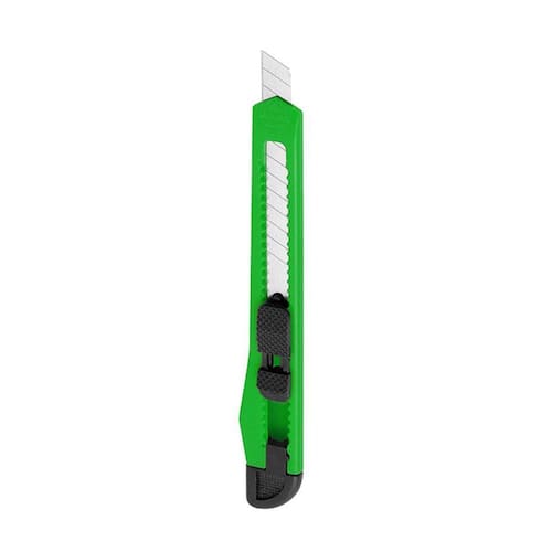 Estilete plástico gatte 09 mm Características: - material: aço e plástico - cabo anatômico - largura da lâmina: 09 mm - comprimento do corpo: 13 cm - com trava de segurança: sim - com quebrador de lâmina: sim Produto enviado em cores : verde, amarelo, azul ou vermelho