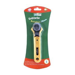 stilete Rotativo 28mm Amarelo Leoarte, Ideal para uso artístico e trabalhos manuais, com trava de segurança. Corta papel, EVA e tecido, entre outros materiais.