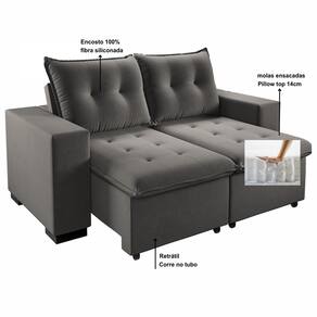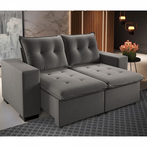 - Possui Borda de PVC nas Bordas?: Não - Possui Pés?: Sim - Possui Sapatas?: Não - Possui Rodízios?: Sim - Possui Tampo?: Não - Possui Puxadores?: Não - Possui Prateleiras?: Não - Sofá-Cama: Não - Pés com regulagem de altura?: Não - Possui Espelho?: Não - Possui Portas?: Não - Categoria: Sofá - Possui Gavetas?: Não - Material da Estrutura: Eucalipto - Espessura da Estrutura: 21 mm - Escala de Brilho: Semi-Brilho - Quantidade de Lugares: 3 - Peso Suportado: 260 kg - Escala de Conforto: Firme - Medidas do Sofá Aberto (A x L x P): A: 109 x L:204 x P:150cm - Como os Móveis Chegarão em Minha Casa?: Desmontado em caixas, acompanhado de todas as peças, ferragens e manuais para montagem. - Grau de Dificuldade de Montagem: Médio - Sistema de Montagem: Parafusos, cavilhas, cola e minifix. - Indicação de Uso: Sala de Estar - Observação: Objetos decorativos que aparecem nas imagens, não acompanham o produto. A capacidade de carga considera que o peso está distribuído igualmente pela peça. As cores das imagens podem variar de acordo com as configurações do seu monitor e/ou da iluminação do ambiente onde o produto está inserido. As imagens indicam uma sugestão - Recomendação de Manutenção: Utilizar pano levemente umedecido, seguido de pano seco. Não utilizar quaisquer produtos abrasivos. - Garantia (dias): 90 Dias - Quantidade de Pés: 4 - Revestimento/Acabamento: Tecido - Tipo do Assento: Retrátil - Tipo de Sofá?: Sofá - Tipo de Encosto: Reclinável - Enchimento do Assento: D-23 - Composição do Tecido: Veludo - Enchimento do Encosto: Fibra Siliconada - Necessita de Montagem: Sim - Pode Ser Montado Invertido?: Não