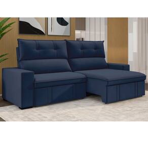 Video demonstrativo. Produto Montado: Sim Acompanha Almofadas extras: Não Almofada do assento: Fixa Almofada do encosto: Fixa Altura do assento até o chão: 46.0000 Altura do Encosto: 75 cm Altura dos Pés: 5 cm Altura Máxima dos Pés: 5.0000 Ambiente Principal: Sala de Estar Bipartida: Não codigo_ean: 7900288096173 Complexidade da Montagem: Baixa: pode ser montado por uma pessoa sozinha Cor: Azul Cor do Produto: Azul Densidade do Assento: D-26 Enchimento do Assento: Espuma Enchimento do Encosto: Fibra Siliconada Estilo de Braço: Braços Quadrados Firmeza do Assento: Médio Itens Inclusos: 1 Sofá, Kit Ferragens + Manual de Montagem Largura do Braço: 21 cm Linha ou Coleção: Coleção Premium Manual de Montagem e Instalação: https://product-hub-prd.madeiramadeira.com.br/982206/documents/35a875cf-12c7-468f-8113-d5ecd170735565641742501298982206150452.pdf Marca: Arte Cúbica Estofados Material da Corrediça do Sofá: Aço/Metal Material dos Pés: PVC Montagem Flex: Não Necessita Montagem: Sim Origem do Produto: Nacional Peso: 75 kg Peso Suportado por m²: 110 kg/m² Pet Friendly: Não Porta Copos: Não Possui Baú: Não Possui Entrada USB: Não Possui Mola: Sim Possui Percintas Elásticas: Sim Possui Pés: 08 Possui Rodízio: Sim Profundidade Quando Estendido: 163 cm Profundidade quando extendido: 163.0000 Quantidade de Estágios do Encosto: 3 Quantidade de Molas por Assento: 2 Recomendações de Uso, Manutenção e Limpeza: Não molhar o estofado, não deixar por longas horas exposto ao sol, usar apenas água na limpeza do estofado Revestimento do Braço: Tecido Rodízio com Trava: Não Sistema de Montagem: Parafusos Suporta Até (kg): 110 kg Tecido Predominante: Veludo Tipo de Encosto: Regulável Tipo de Mola: Molas Bonnel Tipo de Sofá: Sofá Comum