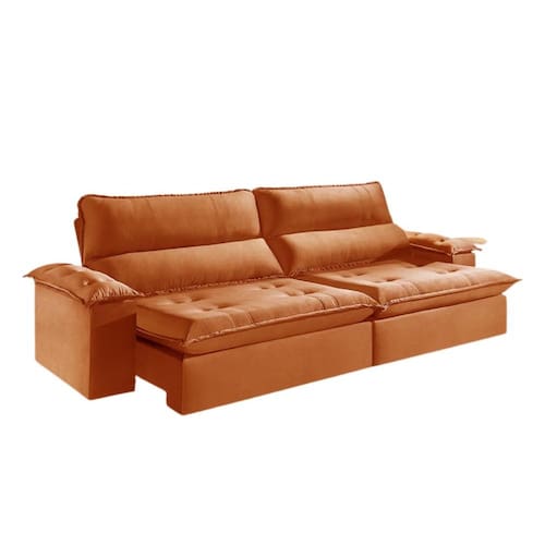 Com design moderno e estrutura reforçada, o Estofado Kiara é ideal para quem busca conforto e estilo no ambiente. Conta com assentos retráteis e encostos reclináveis que oferecem maior relaxamento para os momentos de descanso. Sua coloração em terra cota traz um toque contemporâneo e sofisticado, fácil de harmonizar com qualquer decoração.