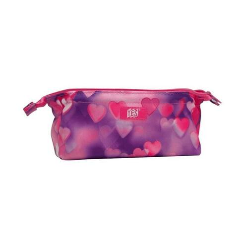 Estojo 1 Zíper Yes Coração Lilás Estampado ES1805 Estojo com 1 zíper, em alta costura, tecido estampado altamente resistente e moderno, sustentação em metal para completa visualização e manuseio dos objetos com cursores personalizados.