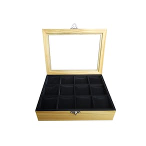 Estojo/Caixa 12 Relógios Madeira - Marfim Flocado De Preto