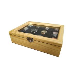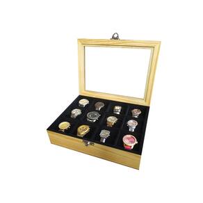Estojo/Caixa 12 Relógios Madeira - Marfim Flocado De Preto