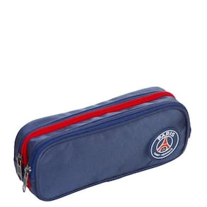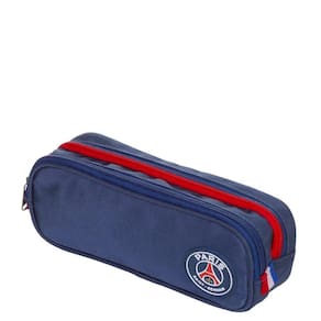 Este resistente estojo tem o azul do uniforme do PSG como principal cor, com detalhes em vemelho no zíper e um detalhe da bandeira francesa na costura. São dois compartimentos, com aberturas individuais em zíper.