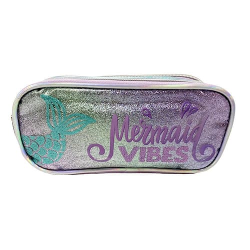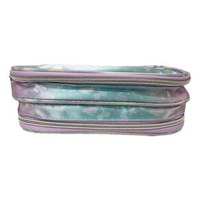 Painel frontal com impressão transfer com gradiente em pu com glitter. Puxadores de zíper de metal dourado claro. Especificações: - 2 compartimentos; - fechamento em zíper; - forro; - puxador em tecido; - material: poliéster; tamanho aproximado cm : 23 x 10 x 05 Atenção: imagem meramente ilustrativa. Pode ocorrer mudanças no tom da cor para o produto real.