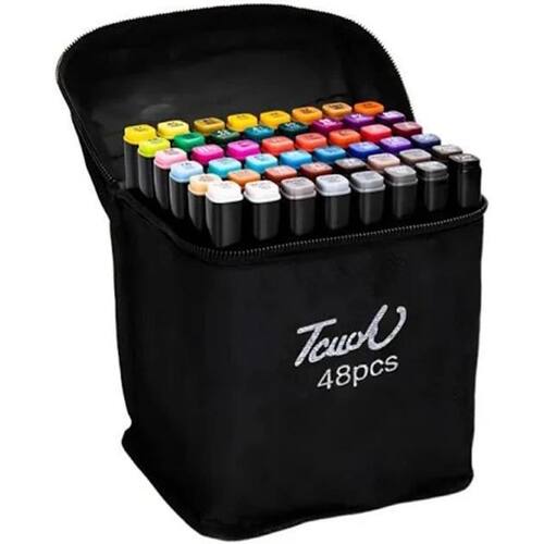 48 Cores Intensas: Misturas suaves e transições perfeitas. Tinta Permanente à Base de Álcool: Secagem rápida e resistente à água. Pontas Duplas: Fina para detalhes, chanfrada para traços largos. Tampas Codificadas por Cor: Organização e identificação facilitadas. Estojo Prático: Transporte e armazenamento seguro. Perfeito para artistas, estudantes e entusiastas da arte.