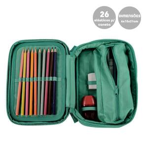 Estojo baú escolar especial crinkle verde jade sestini o estojo é prático, espaçoso e ideal para quem possui muitos lápis, canetas e outros materiais e acessórios. Além de facilitar seu dia a dia na escola, esse estojo possui material resistente, e estruturado, espaçoso e possui divisória central com elásticos que auxiliam na organização do material. Possui fechamento em zíper. Características: - 26 elásticos para lápis e canetas; - material de alta resistência, máxima leveza; - design diferenciado e super leve; - composição: 100% náilon; - medidas: l 15 x a 06 x p 21cm; -imagens meramente ilustrativas - não acompanha materiais extras atenção: a cor do produto pode variar de acordo com o monitor. Atenção: o fabricante pode alterar a cor de alguma parte do produto sem aviso prévio. Marca: Não Informado