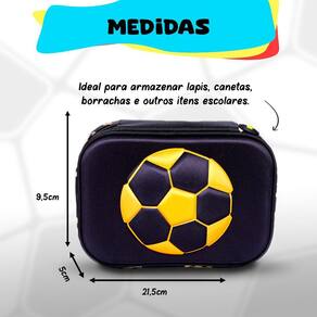 Estojo Bola De Futebol 3D Escolar Infantil Meninos- Preto