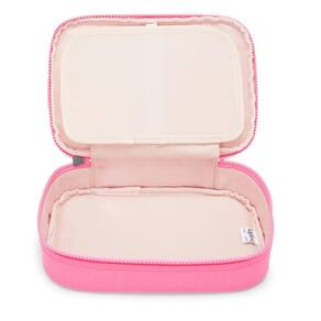 O 100 Pens é um estojo estruturado e espaçoso, com uma divisória central que possui elástico para acomodar lápis e canetas. O modelo é ideal para o dia a dia escolar ou até mesmo para guardar maquiagem.